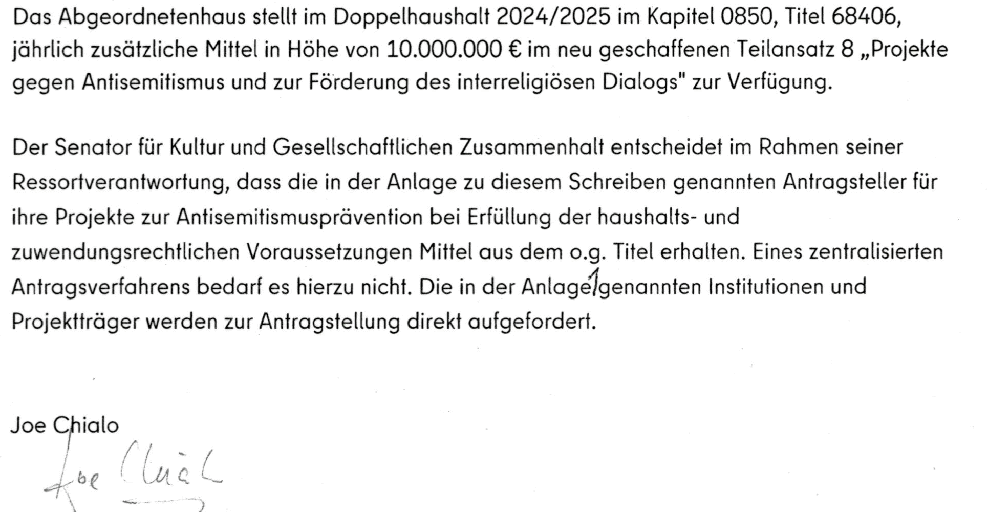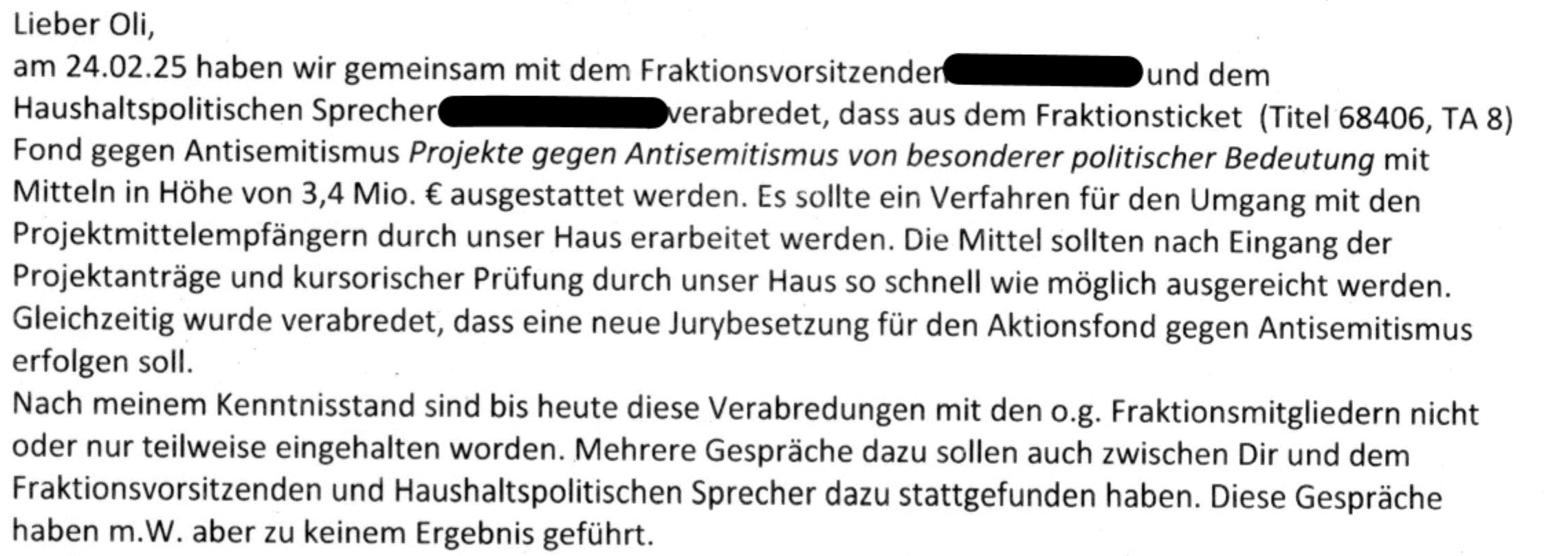 Aber von vorne: Nach dem Terrorangriff der Hamas am 7. Oktober 2023 stellte die Berliner Regierung jährlich zehn Millionen Euro für „Projekte gegen Antisemitismus und zur Förderung des interreligiösen Dialogs“ bereit. Bereits im ersten Jahr blieb ein Drittel des Geldes ungenutzt – obwohl entsprechende Förderanträge vorlagen. 2025 wurden die verbliebenen rund 3,4 Millionen Euro neu verplant für sogenannte „Projekte von besonderer politischer Bedeutung“. Doch was genau darunter fällt und nach welchen Kriterien diese Projekte ausgewählt wurden, blieb für das Parlament und somit auch für die Öffentlichkeit weitgehend unklar.